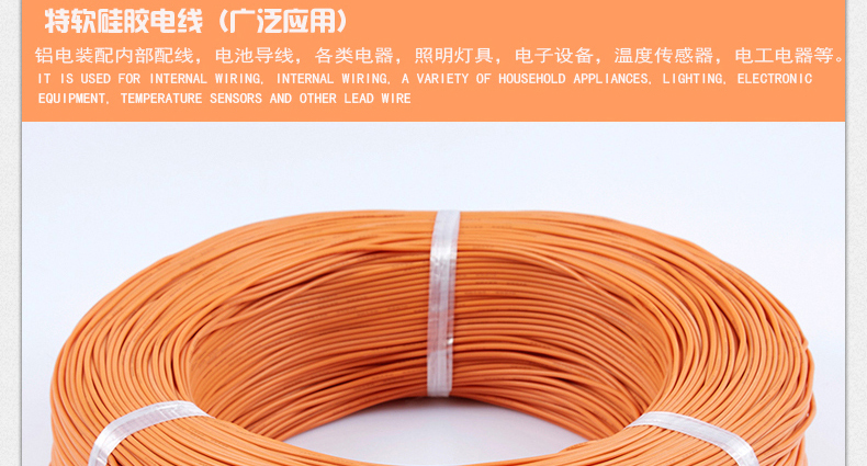 6、绝缘:绝缘厚度大于0.20毫米,正负0.1的外径误差,每卷线缆长度设定为2000米/轴,硅胶线缆用途说明: